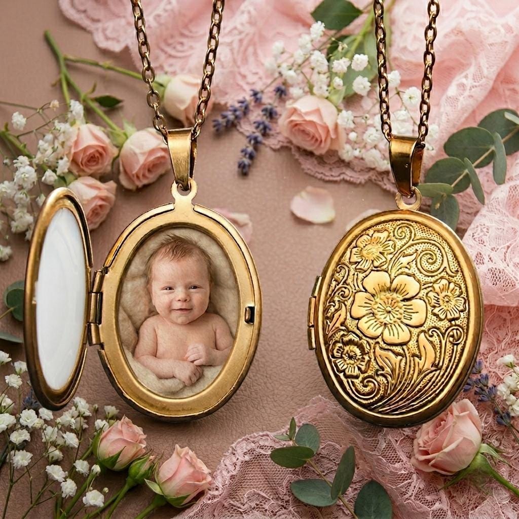 With its timeless elegance, it opens to reveal a precious space where you can keep a drop of breast milk, a lock of hair, a piece of umbilical cord, or a pregnancy test.
